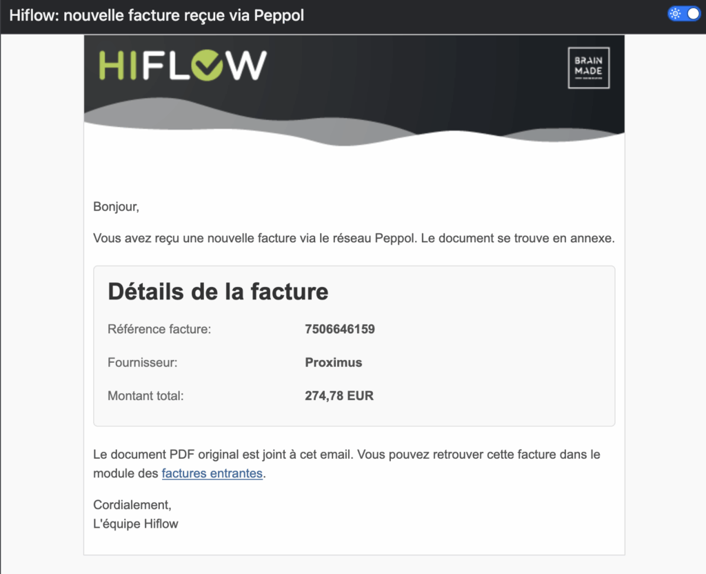 Lorsqu’une facture vous est envoyée via Peppol, Timetrack va :